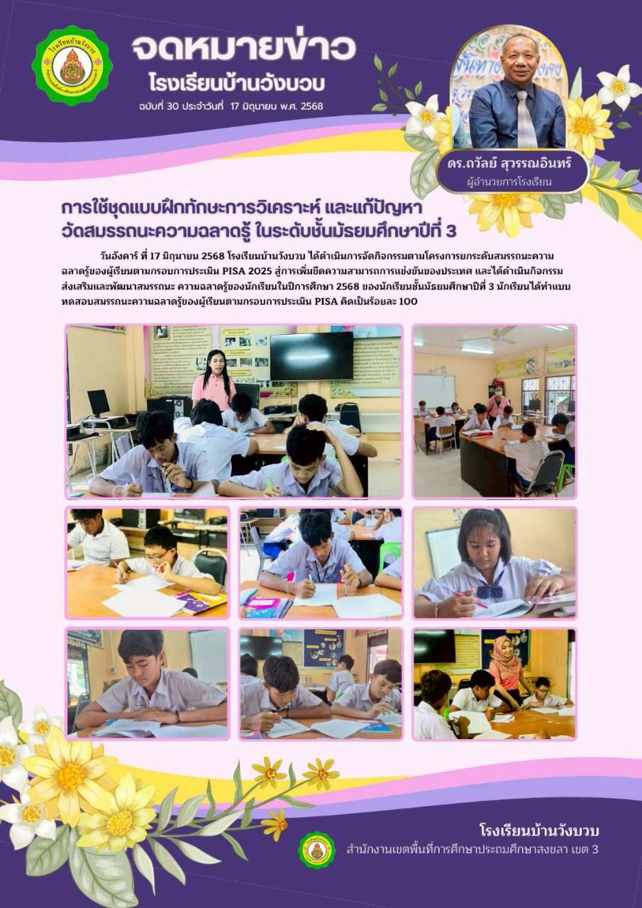 ดำเนินการจัดกิจกรรมตามโครงการยกระดับสมรรถนะความฉลาดรู้ของผู้เรียนตามกรอบการประเมิน PISA 2025