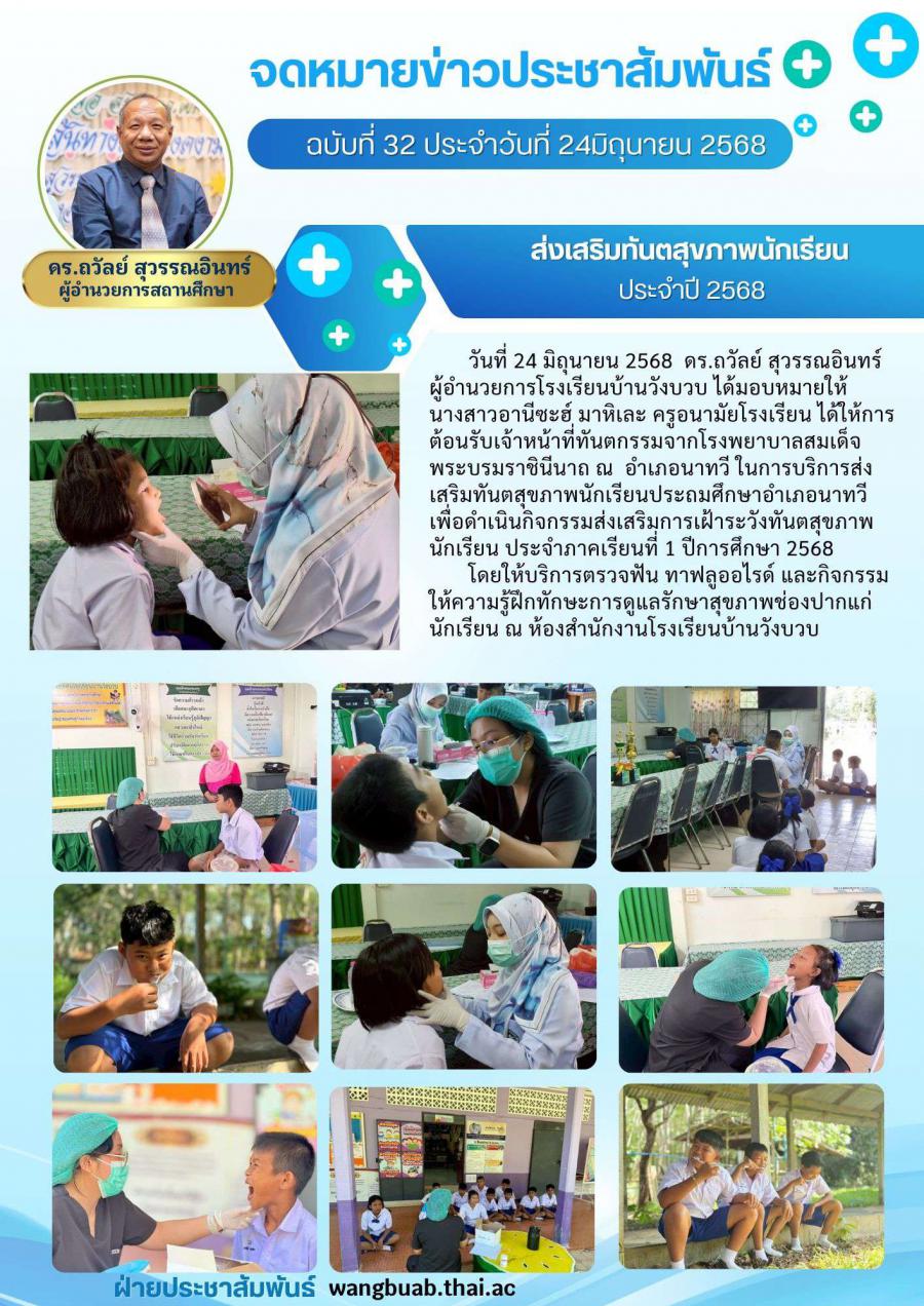 การบริการส่งเสริมทันตสุขภาพนักเรียน